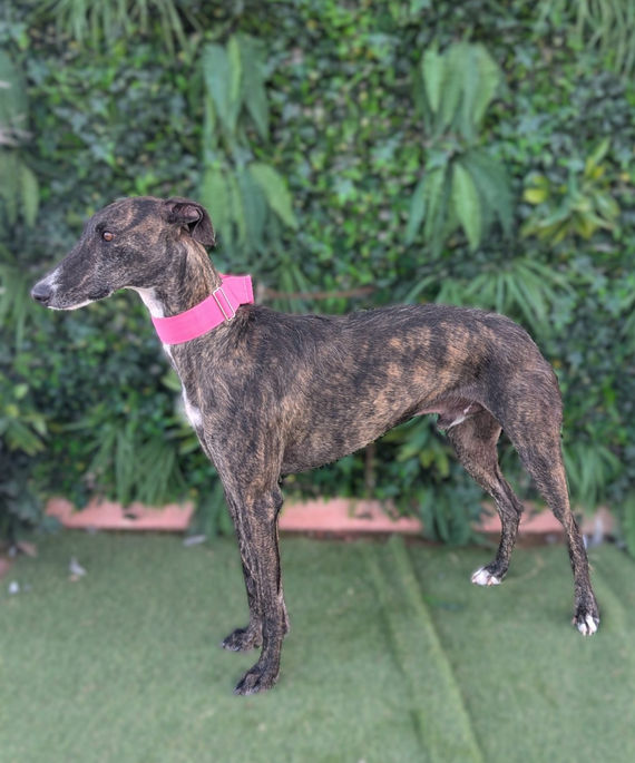 Chaplin est un magnifique lévrier au caractère très noble, calme et docile. Il est méfiant envers les inconnus mais sans être paniqué. Il est timide et ne se montre pas joyeux, préférant rester dans son panier ou observer de loin lorsque quelqu'un qu'il ne connaît pas entre dans son box. Il est néanmoins facile à gérer. Les balades se passent bien car il n'est pas extrêmement effrayé. Il a juste le caractère typique d'un lévrier peu sûr de lui et docile qui a besoin de temps pour s'adapter, et il se montre plus confiant lorsqu'il est avec d'autres chiens. Avec ses congénères, il est très gentil, sociable, toujours soumis et pas dominant. Chaplin sera confié à une famille expérimentée qui a déjà un autre chien sociable à la maison pour que Chaplin puisse apprendre de lui et s'imprégner de son caractère. Test chat et vidéo sur demande.