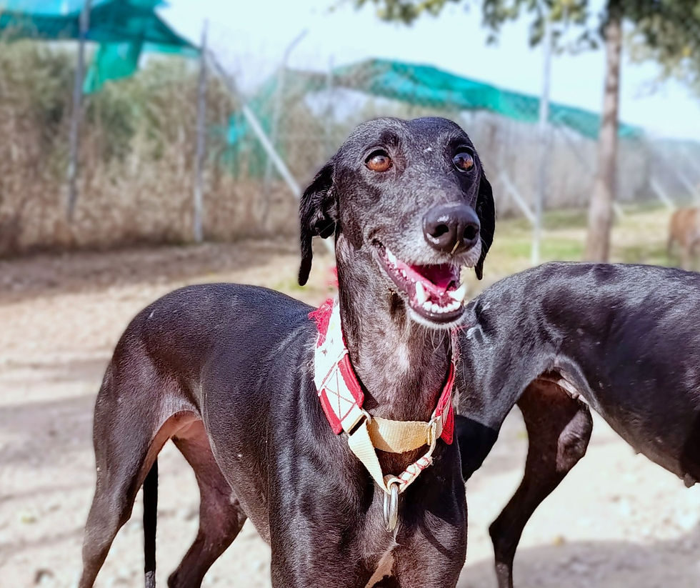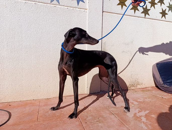 Kaiba est une très jolie galga au caractère docile. Elle est gentille, noble et même sympathique lorsqu'elle est entourée d'autres lévriers joyeux. Elle a juste besoin d'un peu de temps pour prendre confiance, mais en groupe, elle se montre beaucoup plus sociable. Cependant, lorsqu'elle est seule, elle est beaucoup plus timide et peu sûre d'elle et elle marche la queue entre les pattes avec le corps recroquevillé en surveillant tout ce qui se passe autour d'elle avec crainte. Lorsqu'elle est avec des chiens qui aboient, elle aboie aussi. C'est une imitatrice invétérée et il serait donc idéal pour elle d'être avec un autre chien joyeux et sociable qui lui permette de montrer son côté le plus doux et d'être complètement heureuse (si elle est avec des lévriers sociables, elle est très sociable et confiante, voire facile à vivre et affectueuse). Avec les autres chiens, elle est toujours très gentille, sociable, soumise et pas dominante. Une famille qui a déjà un galgo et qui envisage d’en adopter un 2ème serait l’idéal pour elle. Lors du test avec les chats, elle s’est comportée de manière très détendue et équilibrée à la maison. Il semble que le refuge la stresse et qu'elle se sente beaucoup plus en sécurité, confiante et sociable dans un foyer. Vidéo sur demande.