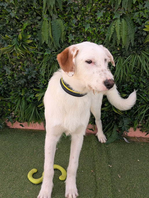 Jax a été trouvé au bord d’une route avec sa maman, une podenca, et son frère Sandor.